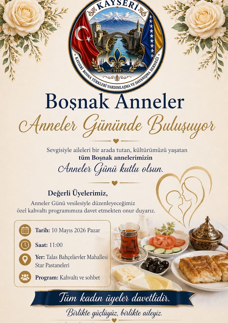 Tüm üyelerimizi ve kıymetli annelerimizi bu anlamlı buluşmaya davet ediyoruz.